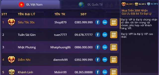 Các ngân hàng mà người chơi có thể giao dịch gồm: Techcombank, BIDV, ACB, Vietinbank, Vietcombank, Sacombank…