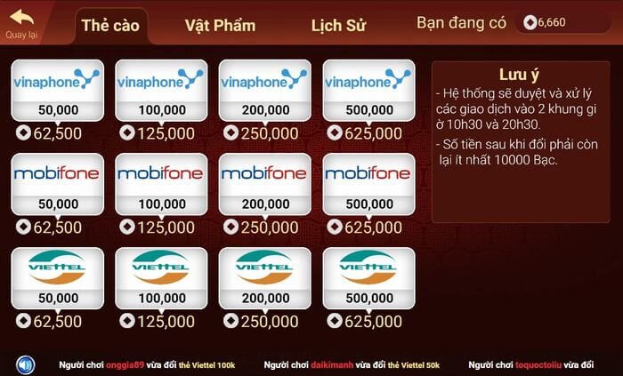 Cách thức đổi những thẻ cào điện thoại từ các trò chơi bài đổi thưởng này.