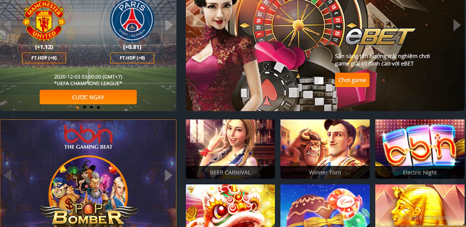 Các sản phẩm cá cược nổi bật dưới đây: